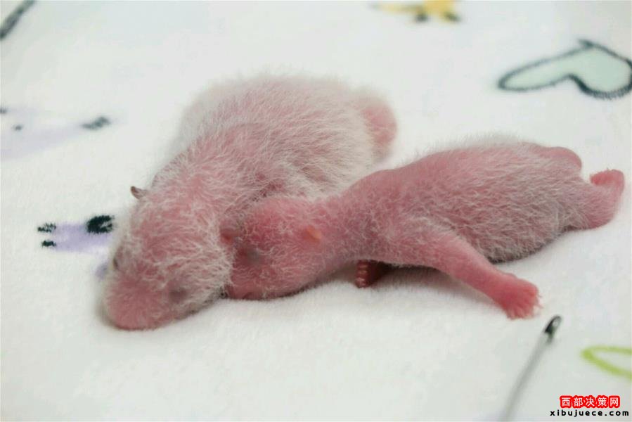 這是出生剛滿一周的大熊貓“大寶”(左)和“小寶”(7月3日攝)。7月3日,中央贈澳大熊貓“心心”產(chǎn)下的雙胞胎“大寶”和“小寶”(乳名)出生滿一周,出生時體型較大的“大寶”體重由剛出生時的135克增至167.2克;出生時體型較小的“小寶”體重由53.8克增至77.9克。新華社發(fā)
