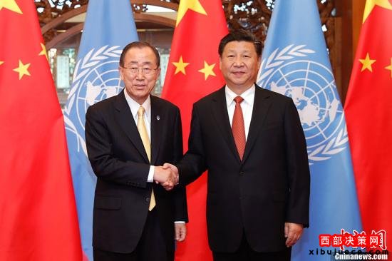 習(xí)近平歡迎潘基文出席9月二十國(guó)集團(tuán)領(lǐng)導(dǎo)人杭州峰會(huì)。習(xí)近平指出,中方高度重視并同聯(lián)合國(guó)在發(fā)展和氣候變化等問(wèn)題上開(kāi)展了密切合作,取得了重要進(jìn)展。中方推動(dòng)二十國(guó)集團(tuán)領(lǐng)導(dǎo)人峰會(huì)聚焦發(fā)展問(wèn)題,推動(dòng)共建“一帶一路”,就是要助力2030年可持續(xù)發(fā)展議程。中方倡導(dǎo)設(shè)立亞投行,并愿同聯(lián)合國(guó)、世界銀行等國(guó)際組織加強(qiáng)合作,就是要同世界各國(guó)分享中國(guó)的發(fā)展機(jī)遇。