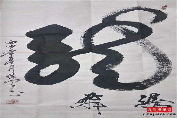 龍乃華人想象中最尊貴、最吉祥之物。生活之中無所不在,上下五千年,仍一以貫之,舉世無與倫比。華人更以龍的傳人自居,一旦風(fēng)起云涌,海生駭浪,則龍卷風(fēng)云,霞光萬丈。其“一筆龍”書法作品將書法和繪畫非常巧妙的而高度的融合,依易經(jīng)智慧,集意念、氣功為一體,運筆如神,酬勁有力,一氣呵成,氣勢磅礴,形象逼真。整個字體呈現(xiàn)出一條蒼龍騰躍飛天之勢,寓意了中國龍騰飛吉祥的福兆,更展現(xiàn)了中華民族不屈不饒的民族精神。