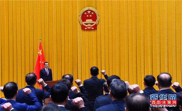 9月18日上午,國務院在北京中南海首次舉行憲法宣誓儀式。國務院總理李克強監(jiān)誓。