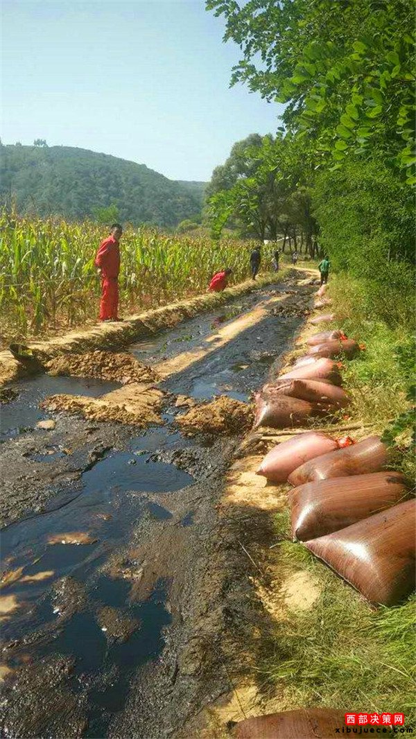 8月30日在化子坪作業(yè)區(qū)在寺溝原油泄漏照片。