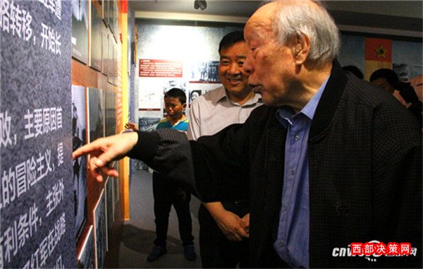 “那時候國民黨把哥哥抽走到了國民黨軍隊,紅軍到江油后,我爸爸說認識到紅軍才是咱們自己隊伍,就讓我哥哥離開國民黨去參加紅軍,可我也想去,后來家里商量了覺得哥哥家里還有嫂子和兒子,所以后來就把我送到到了紅軍。”今年93歲的老紅軍徐世均在展覽現(xiàn)場講述了自己參加長征的故事。