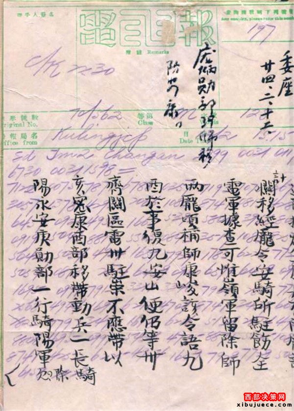 據(jù)了解,這40份珍貴檔案不僅有陜西省檔案館館藏的1934年到1936年間蔣介石調(diào)遣部隊“圍剿”紅軍的電報,地方政府關(guān)于紅軍活動情況給國民陜西省政府的報告資料,還有楊虎城、張學(xué)良、孫蔚如等關(guān)于“圍剿”紅軍給陜西省政府的電報、信件等。