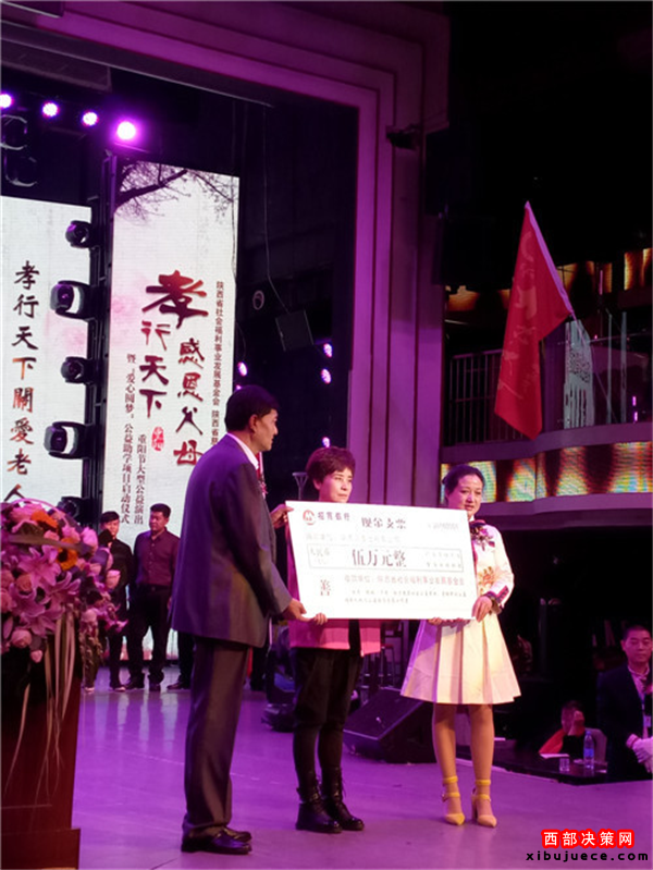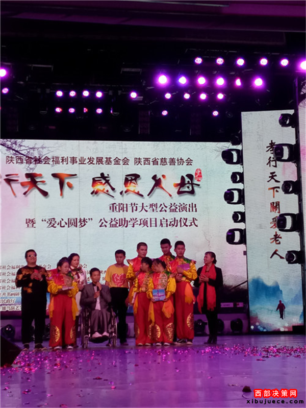 西部決策網(wǎng)訊 我國傳統(tǒng)的節(jié)日“九九重陽”也是“老人節(jié)”。值此佳節(jié)良晨,在西安金翅鳥演藝隆重舉行了由陜西省民政廳指導(dǎo),陜西省社會福利事業(yè)發(fā)展基金會攜手陜西省慈善協(xié)會聯(lián)合主辦,陜西省社會福利發(fā)展基金會主持人專項基金委員會、陜西賓悅文化傳媒有限公司承辦,以及陜西省社會福利事業(yè)發(fā)展基金會陜北力量專項基金委員會、陜西省社會福利事業(yè)發(fā)展基金會關(guān)公文化專項基金委員會、陜西省社會福利事業(yè)發(fā)展基金會陜北民歌專項基金委員會、陜西省社會福利事業(yè)發(fā)展基金會影視文化專項基金委員會聯(lián)合協(xié)辦的“孝行天下感恩父母”大型公益演出暨“愛心圓夢”公益助學(xué)項目隆重啟動。