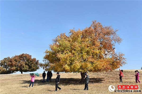 蒙古族群眾祭祀“神樹”,祈禱風調雨順。