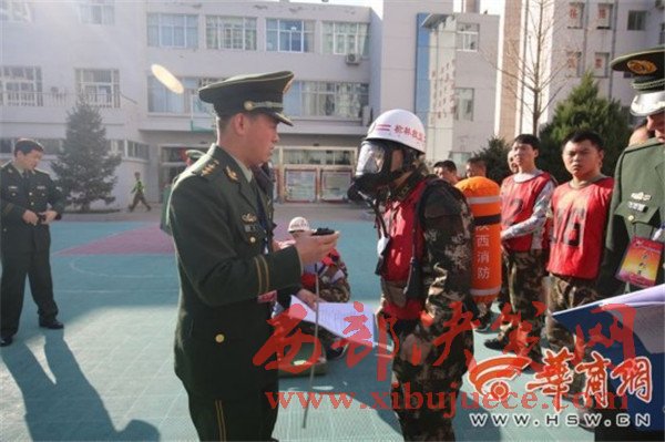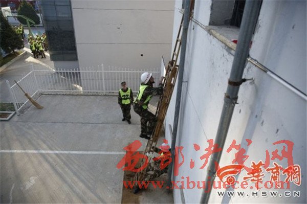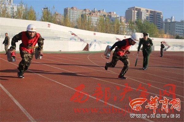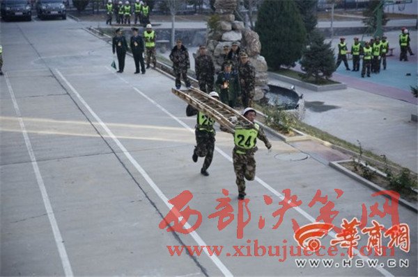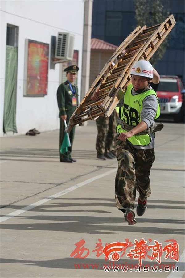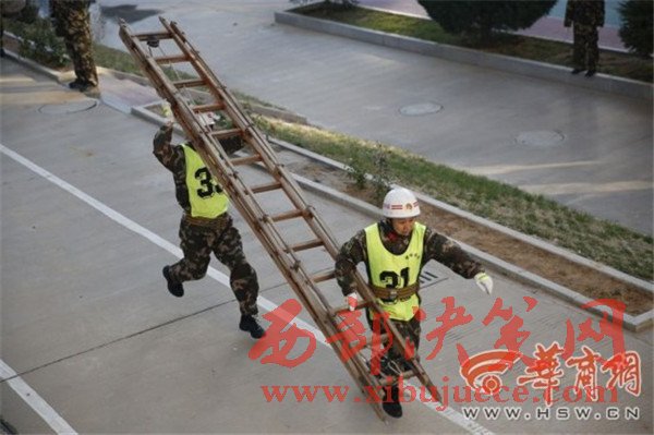 負(fù)重攀登10樓 榆林市消防大比武130余名鐵漢炫技