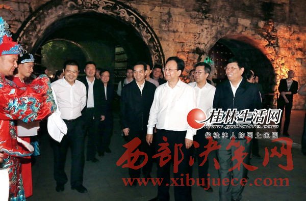 景俊海一行還來到正陽東巷歷史文化街區(qū)進行調研。經(jīng)過修繕改造后的正陽東巷歷史文化街區(qū),青磚黛瓦、古色古香,夜晚大紅燈籠高高掛起,許多中外游客徜徉其間,仿佛有種時光穿梭之感。景俊海一行沿著古樸的巷子,認真聽取了關于東巷改造情況介紹,并饒有興趣地參觀了保護修繕后的馬啟邦舊居、岑氏公保弟舊址等。他還登上恢復重建的桂林逍遙樓,一邊參觀一邊聽取逍遙樓的歷史典故、重建情況等介紹,對桂林市委、市政府實施“尋找桂林文化的力量,挖掘桂林文化的價值”戰(zhàn)略,精心設計、挖掘和保護桂林歷史文化表示充分肯定。景俊海一行還前往愚自樂園法國地中海俱樂部桂林度假村、“兩江四湖”環(huán)城水系工程、靖江王府、臨桂新區(qū)“一院兩館”(桂林大劇院、桂林博物館、桂林圖書館)、桂林崇華中醫(yī)文化街等文化項目進行調研。