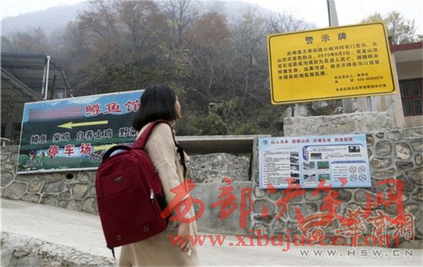 昨日上午,華商報(bào)記者來(lái)到王莽街道小峪河村涉事農(nóng)家樂(lè),該農(nóng)家樂(lè)仍在正常營(yíng)業(yè)。在農(nóng)家樂(lè)門(mén)口,立著一個(gè)很顯眼的黃色警示牌,是長(zhǎng)安區(qū)防汛抗旱指揮部辦公室設(shè)置的,上面寫(xiě)著2015年8月3日突發(fā)山洪造成九人死亡的事情,并提醒群眾遠(yuǎn)離河道,雨天不得在溝口逗留,不得在此亂搭亂建,該牌子。在警示牌下面,有一條用水泥砌成的水溝,從路邊一直通往山上,華商報(bào)記者注意到,在山坡上有水向下流出。