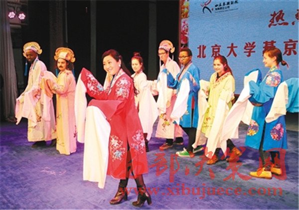 臺下就座的,則是一群特殊的學生——北京大學燕京學堂的來自42個國家和地區(qū)的學生們,他們把易俗社小劇場坐得滿滿當當。在英語翻譯的配合下,秦腔這種中國非物質文化遺產的精髓被一點點輸入他們的腦海。