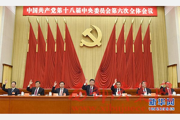 中國共產(chǎn)黨第十八屆中央委員會第六次全體會議,于2016年10月24日至27日在北京舉行。這是習(xí)近平、李克強、張德江、俞正聲、劉云山、王岐山、張高麗等在主席臺上。新華社記者李學(xué)仁攝