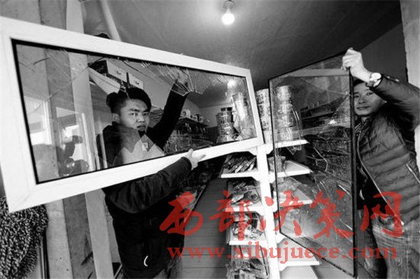 令趙女士沒想到的是,27日下午5點多,這群人又出現(xiàn)了。當(dāng)時趙女士的兒子田江正在里屋吃飯,外面的防盜門虛掩著,突然七八個男子帶著洋鎬把就沖了進來,沖著貨架一通亂砸。田江說:“我聽見響動掀開門簾出來,都是蒙面的小伙,我聽清楚了對方的一句話‘還敢開還砸!’,我當(dāng)時看著對方人多,沒敢追。”目前,趙女士一家已經(jīng)報警,韋曲派出所正對此事做進一步調(diào)查。