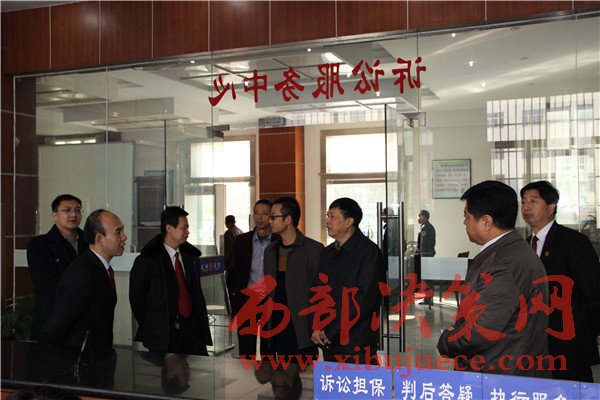西部決策網訊(帥華鋒 杜杰 通訊員 王宏軍)近日,寶雞市市委政法委綜治辦調研員李曉科一行,來鳳翔法院檢查參與平安建設及社會治安綜合治理工作??h委常委、政法委書記張軍良,縣法院代院長趙宏偉陪同檢查。