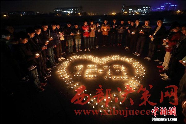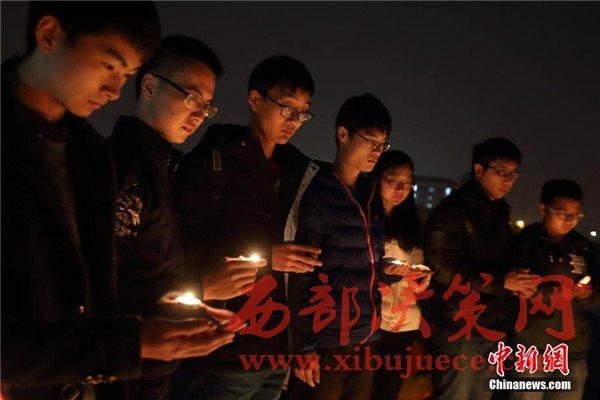 12月12日晚,在第三個(gè)國(guó)家公祭日前夜,主題為“愿逝者安息,為生者祈福”的燭光祭活動(dòng)在南京東南大學(xué)九龍湖校區(qū)內(nèi)舉行,來自該校機(jī)械工程學(xué)院的大學(xué)生們點(diǎn)燃蠟燭,擺放成心形和1213字樣,為南京大屠殺死難者集體默哀,寄托哀思。