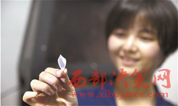 經過這不均勻的“日光浴”后,黃麗媚把玻璃中間的材料拿出來,之前的液體已經變成一張扁平的薄膜。