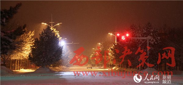 在路燈的照耀下邊城雪夜盡顯華麗