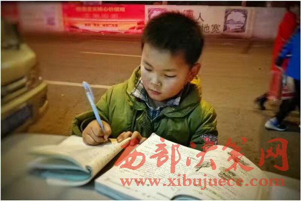 攤位旁,張女士的兒子正趴在垃圾桶上認(rèn)真地寫作業(yè)。這一幕,經(jīng)常會發(fā)生在青島臺東大酒店附近。附近許多商販都知道“路邊賣烤地瓜那家”的兒子學(xué)習(xí)很用功,也特別懂事,經(jīng)常幫母親收拾貨物,照看攤位。