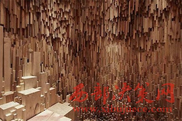 空心這個(gè)交互式裝置是藝術(shù)家Katie Paterson和建筑家Zeller & Moye的作品。該作品由10000多塊跨越百萬(wàn)年的木材制成。它們被切成木板,之后雕成鐘乳石的形狀,掛在天花板上,為參觀者聽過(guò)獨(dú)特的,步行參觀體驗(yàn)。