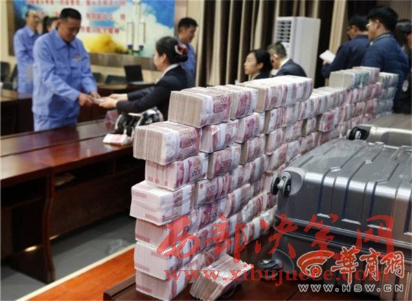 昨日上午9時20分,裝著1000萬現(xiàn)金的武裝押運(yùn)車開到工地,安保人員和企業(yè)員工將10萬元一捆的百元大鈔碼出了一座“錢山”,看著眼前堆成小山似的現(xiàn)金,早早前來排隊的農(nóng)民工們也是興奮不已。