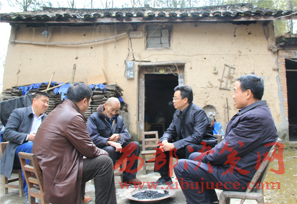 縣委書記梁濤在貧困戶家中調(diào)研(左二為梁濤)