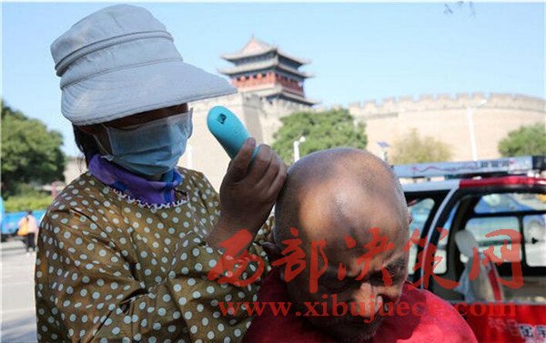 2016年9月21日,陜西榆林,劉福學把所有積蓄都用來收藏,生活節(jié)儉,頭發(fā)長了就在街頭的5元理發(fā)攤解決。