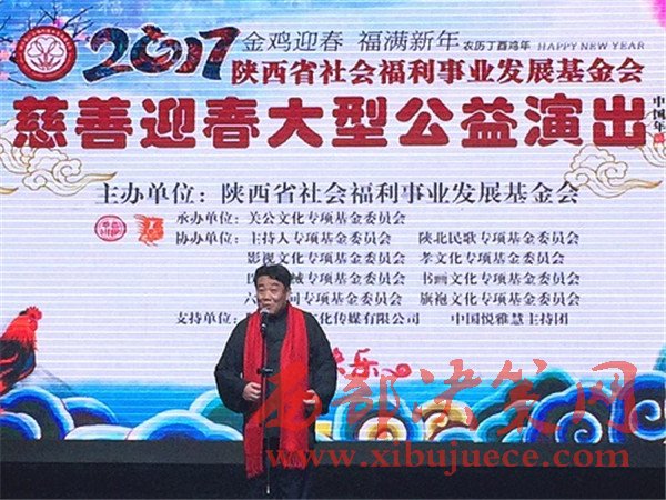 1月18日晚,由陜西省社會福利事業(yè)發(fā)展基金會主辦、關(guān)公文化專項基金委員會承辦、主持人專項基金委員會、陜北民歌專項基金委員會等協(xié)辦、陜西省民政廳指導(dǎo)的《慈善迎春》大型公益演出在蓮湖區(qū)絲路藝術(shù)劇院成功舉辦。