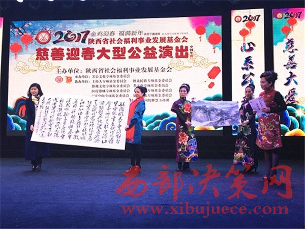 晚會上不僅有流連忘返的歌舞表演,同時眾多書畫大家也在晚會現(xiàn)場一一亮相。其中,中國著名書法家林中陽先生還捐贈了巨幅作品兩幅,助力本場晚會。此外,陜西宏源床上用品有限公司總經(jīng)理周星雷向本次晚會現(xiàn)場捐助人民幣10000元,以表達企業(yè)對慈善公益事業(yè)所盡的一份綿薄之力。