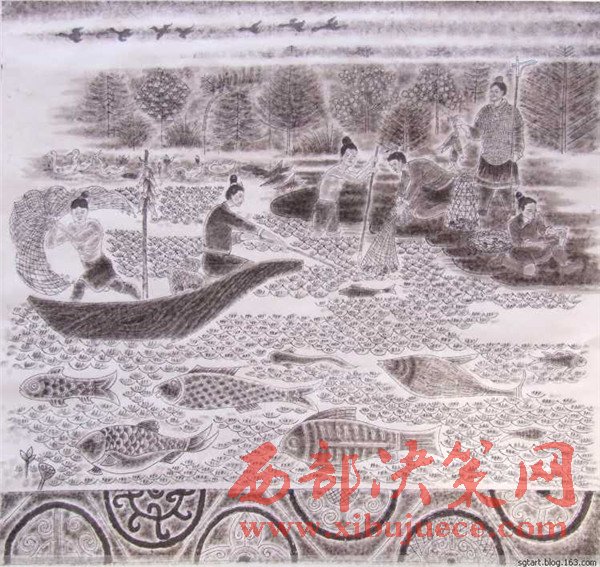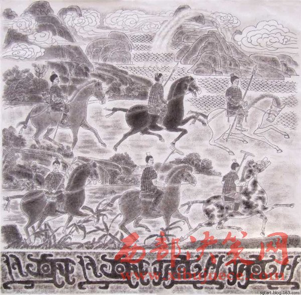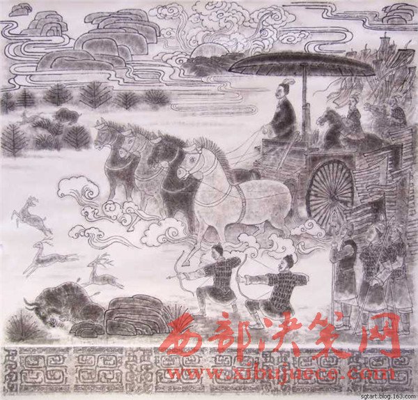 “永不滿足是前進的動力”。為了更直觀地表達石鼓文,他發(fā)揮自己書畫的藝術天賦,潛心研究,又創(chuàng)作出了十幅《石鼓文圖》。它以中國傳統(tǒng)繪畫形式每幅畫于八尺宣紙,各件既是單幅作品,又互相關聯(lián),洋洋巨著,連接在一起近乎三丈,氣勢恢弘,再現(xiàn)了十面石鼓的原始歷史景象,再現(xiàn)了先秦時期政治、軍事和民眾生活、飛禽走獸和自然風光。對人們了解、研究先秦歷史必將產(chǎn)生積極的輔助作用。