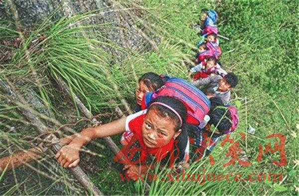 曾經(jīng),孩子們背著沉甸甸的書(shū)包,每天爬藤梯上下學(xué)。