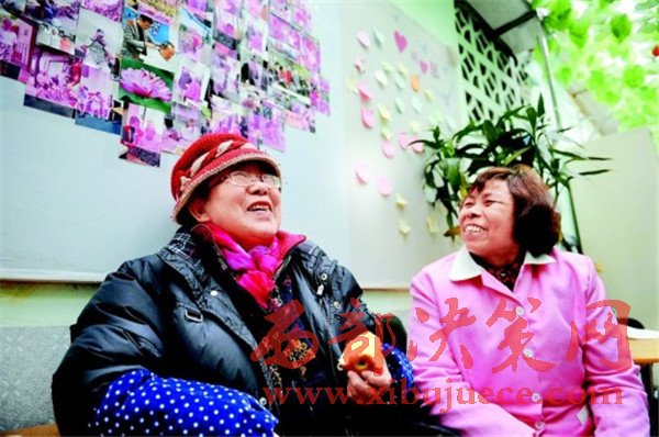78歲的文周碧老人(左)在服務(wù)中心感受到家的溫暖。