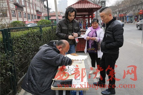 這名長發(fā)先生被賈維軍的精神打動,用100元買了一把賈維軍的書法折扇。
