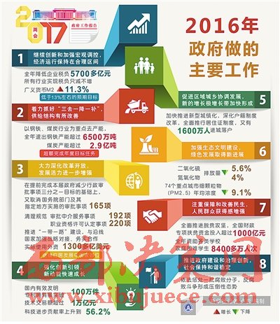 國務(wù)院總理李克強5日在作政府工作報告時說,過去一年,我國發(fā)展面臨國內(nèi)外諸多矛盾疊加、風(fēng)險隱患交匯的嚴峻挑戰(zhàn)。在以習(xí)近平同志為核心的黨中央堅強領(lǐng)導(dǎo)下,全國各族人民迎難而上,砥礪前行,推動經(jīng)濟社會持續(xù)健康發(fā)展。黨的十八屆六中全會正式明確習(xí)近平總書記的核心地位,體現(xiàn)了黨和人民的根本利益,對保證黨和國家興旺發(fā)達、長治久安,具有十分重大而深遠的意義。各地區(qū)、各部門不斷增強政治意識、大局意識、核心意識、看齊意識,推動全面建成小康社會取得新的重要進展,全面深化改革邁出重大步伐,全面依法治國深入實施,全面從嚴治黨縱深推進,全年經(jīng)濟社會發(fā)展主要目標任務(wù)圓滿完成,“十三五”實現(xiàn)了良好開局。