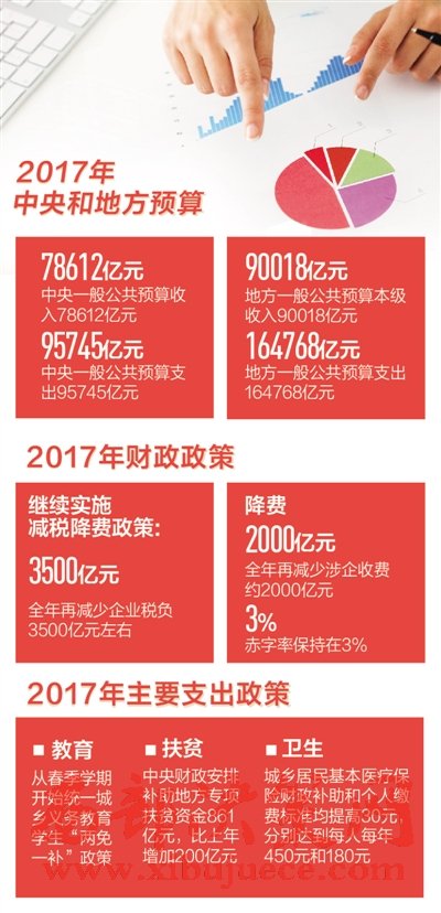雖然赤字率與去年持平,但因為經(jīng)濟(jì)總量擴(kuò)大,今年赤字為23800億元,比2016年增加2000億元。2000億元的新增財力,為加大重點領(lǐng)域支出創(chuàng)造了條件。