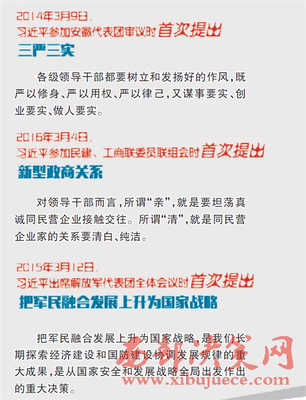 編者按:每年全國兩會(huì)期間,習(xí)近平總書記都要深入團(tuán)組參加討論、審議,與代表委員們共商國是,圍繞治國理政新理念新思想新戰(zhàn)略,發(fā)表了一系列重要講話,深刻回答了在新的歷史條件下黨和國家發(fā)展的重大理論和現(xiàn)實(shí)問題,包括五大發(fā)展理念在內(nèi)的治國理念和執(zhí)政方略,內(nèi)涵不斷豐富,實(shí)踐不斷深入。