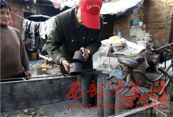一進(jìn)門,看見61歲的夏平安坐在門房里,端著個大老碗正在吃面。華商報記者問:“自己做的面?”他停止吃面,頭一抬,慢慢地說:“老板做的。”他待的是煤場門房,也是他的宿舍,屋子里靠墻擺著一張單人床,上面鋪著厚厚的被褥。院子里堆了好多已經(jīng)打好的煤球。