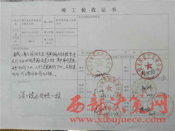 隨后,我社工作人員來到鎮(zhèn)安縣城建局反映問題,城建局稱:“工程于2016年1月份竣工,現(xiàn)已移交城管局,不屬于我們管”。并拿出了工程竣工證書,證書上證明此工程已移交城管局。
