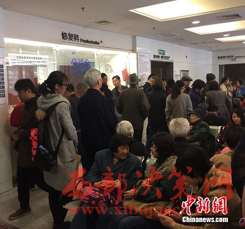 圖為市民們在北京大學(xué)口腔醫(yī)學(xué)院大廳排隊掛號。