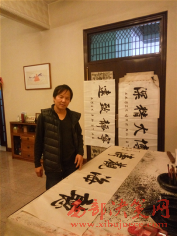 于是在今年的3月18日,經(jīng)過多次聯(lián)系我終于踏上尋訪神交已久的故人,初次看到他映入我的眼簾的是中等的身材蓄著長(zhǎng)發(fā)三七分,方形臉,一個(gè)典型的關(guān)中漢子的形象。就是這樣一個(gè)默默無聞平凡無奇的人,當(dāng)他進(jìn)入蕓蕓眾生之中,尋找起來是那樣的不容易。