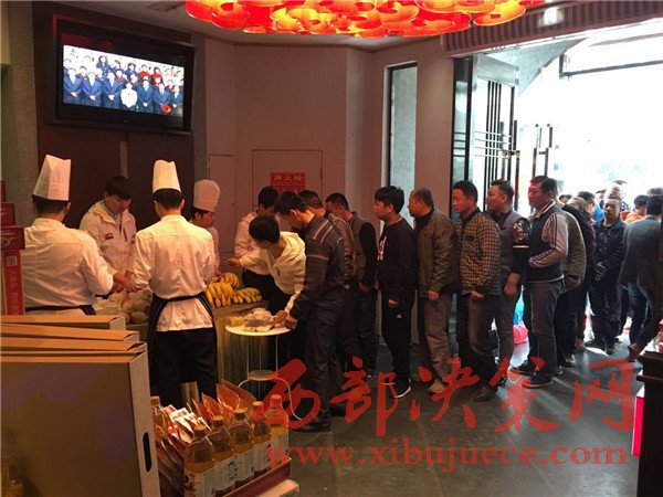 在現(xiàn)場(chǎng)記者看到,旺順閣魚頭泡餅門口工作人員指引的士司機(jī)們到指定車位,兩邊迎賓工作人員熱情接待每位到來的賓客。陸續(xù)到達(dá)的出租車已有近百輛,有序的一字排開,個(gè)個(gè)的哥臉上洋溢著燦爛的笑容,暢談寒暄,快樂的等待著。中午12時(shí),旺順閣魚頭泡餅西安財(cái)富中心店總經(jīng)理呂貴朋女士宣布活動(dòng)正式開始。