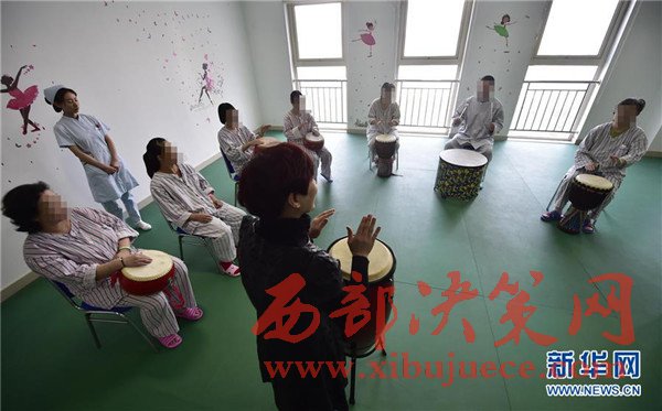 4月6日,抑郁癥患者在康復(fù)治療科的音樂治療室進(jìn)行心理治療。
