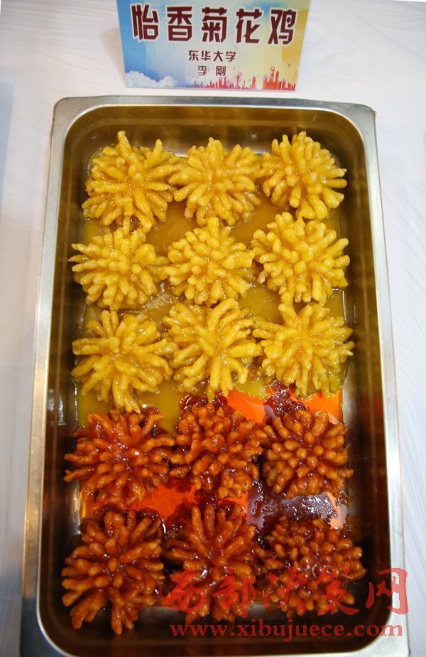 “中國第九大菜系”食堂菜的菜譜里,一天之內(nèi)多出了上百個(gè)新成員。11月12日,一場(chǎng)上海高校食堂間的“創(chuàng)新菜”比賽在上海大學(xué)寶山校區(qū)舉行。東華大學(xué)食堂借鑒“菊花魚”,推出了一道“怡香菊花雞”,也引起了現(xiàn)場(chǎng)的熱議,最終斬獲禽菜類前十名。