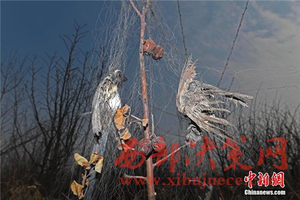 2月14日,山西太原郊區(qū)的一間果園內(nèi),為了保護農(nóng)作物的果農(nóng)搭建了捕鳥網(wǎng),三百余只不同種類的鳥被網(wǎng)圍困致死,有些已腐爛風干。