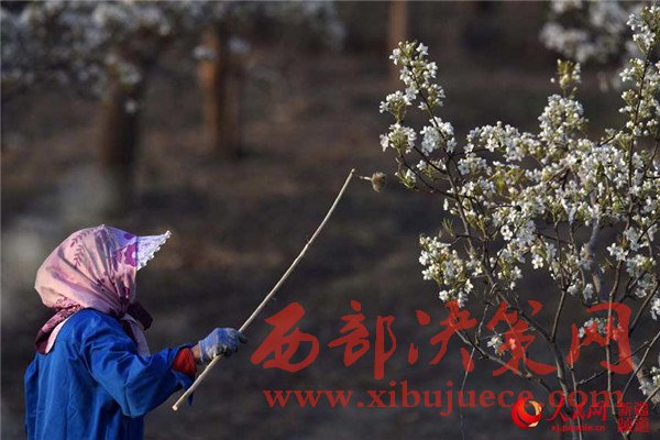 新疆庫爾勒梨花艷 果農(nóng)授粉保豐收