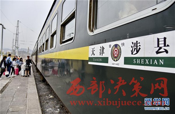 4月15日,4482次列車即將駛離涉縣火車站。當(dāng)日,北京鐵路局河北涉縣至天津間的4482次“綠皮車”開始最后一次“旅行”。從4月16日起,全國鐵路實施新的列車運行圖,此次列車將升級更換為快速空調(diào)列車,運營多年的該線路綠皮火車將告別鐵路舞臺。
