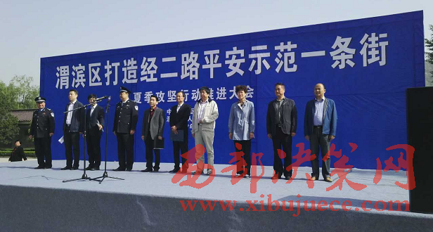 西部決策網(wǎng)-西部大開發(fā)訊(帥華鋒 杜杰)5月6日上午,渭濱區(qū)在炎帝園廣場(chǎng)隆重舉行打造“經(jīng)二路平安示范一條街” 夏季攻堅(jiān)行動(dòng)推進(jìn)會(huì),市委政法委及區(qū)委、區(qū)人大、區(qū)政府、區(qū)政協(xié)相關(guān)領(lǐng)導(dǎo)出席現(xiàn)場(chǎng),公安、執(zhí)法、區(qū)級(jí)部門、平安單位、社區(qū)志愿者組成五個(gè)方陣共300余人參加會(huì)議。