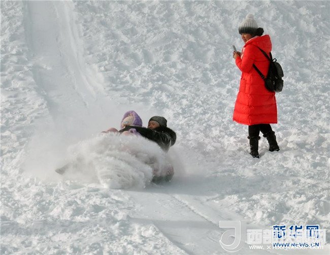 11月25日,在內蒙古牙克石鳳凰山開雪節(jié)現(xiàn)場,人們在雪中游玩。