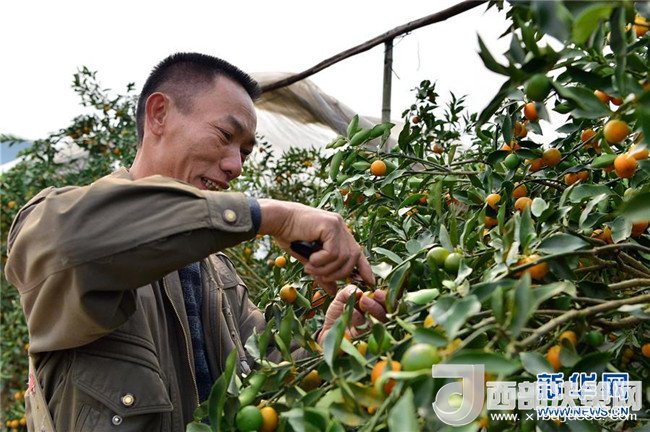 近年來,廣西融安縣因地制宜,把金桔列為扶貧增收的重要產(chǎn)業(yè),通過農(nóng)業(yè)獎補(bǔ)政策、專業(yè)種植技術(shù)培訓(xùn)等鼓勵貧困戶種植金桔,助力脫貧。融安縣大將鎮(zhèn)雅仕村的貧困戶漆昭賢,曾常年在外地打工,生活條件艱苦。2014年在縣里政策引導(dǎo)下,他返鄉(xiāng)種植金桔,并獲得專項(xiàng)補(bǔ)貼和無息貸款,連續(xù)三年參加縣農(nóng)業(yè)局等單位舉辦的種植技術(shù)培訓(xùn)班。如今,漆昭賢不僅在自己的地里種金桔,還承包了周圍農(nóng)戶的土地,種植面積十余畝,今年預(yù)計(jì)產(chǎn)量可達(dá)16000斤,純收入有望達(dá)到4萬元。記者李絢麗攝