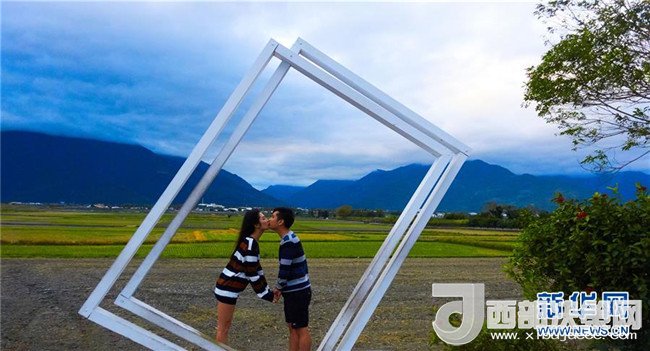 12月3日,一對情侶在臺東縣池上鄉(xiāng)伯朗大道拍照。走進臺東,當?shù)厝舜蠖鄷嬖V你,這里的生活節(jié)奏是慢的。你需要住下來,把心情放松,腳步放慢,吃海鮮、泡溫泉、乘坐熱氣球,感受遠離都市喧囂的寧靜。臺東東臨太平洋,擁有豐沛的天然資源。這里的人文資源也頗具特色,全縣超過三分之一的人口是少數(shù)民族,有相當豐富的部落文化。