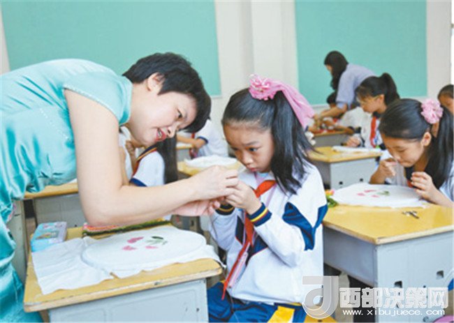 國(guó)家級(jí)非遺潮繡,技藝精湛、美不勝收。今年國(guó)慶后,在振德街小學(xué)校長(zhǎng)金醉芳的邀請(qǐng)下,佘燕璇帶著女兒佘旭磊每周五下午到該校第二課堂免費(fèi)開授1個(gè)小時(shí)的潮繡課。“沒(méi)想到報(bào)名很火爆,”最后在四五年級(jí)里形成了一個(gè)26人班。隨后,佘燕璇又在潮安區(qū)東鳳鎮(zhèn)下張濬智學(xué)校開了個(gè)30人的全免費(fèi)教學(xué)班。金醉芳坦言,“我們請(qǐng)潮繡走進(jìn)校園,不單是興趣培養(yǎng),更是文化傳承。我們要讓潮州文化在孩子們的心靈里播種、生根、發(fā)芽。”