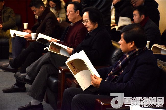 座談會(huì)上各嘉賓翻閱“和天下——絲綢之路詩(shī)詞書(shū)法創(chuàng)作精品集”