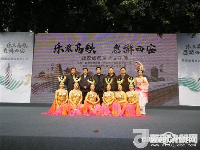 2017年12月13-17日,由西安市旅游發(fā)展委員會、西安曲江新區(qū)管理委員會主辦,西安曲江文化旅游股份有限公司承辦的“樂乘高鐵·惠游西安”西安5折歡游季西成高鐵系列路演活動,分別在廣元利州廣場、綿陽鐵牛廣場、成都寬窄巷子?xùn)|廣場、重慶觀音橋廣場等地精彩上演。巡演向四川、重慶的父老鄉(xiāng)親們介紹了西安豐富的旅游資源,展現(xiàn)了千年古都地靈人杰的文化底蘊(yùn)和生氣盎然的城市魅力。四城路演活動共吸引了近五萬當(dāng)?shù)厥忻裼慰汀?